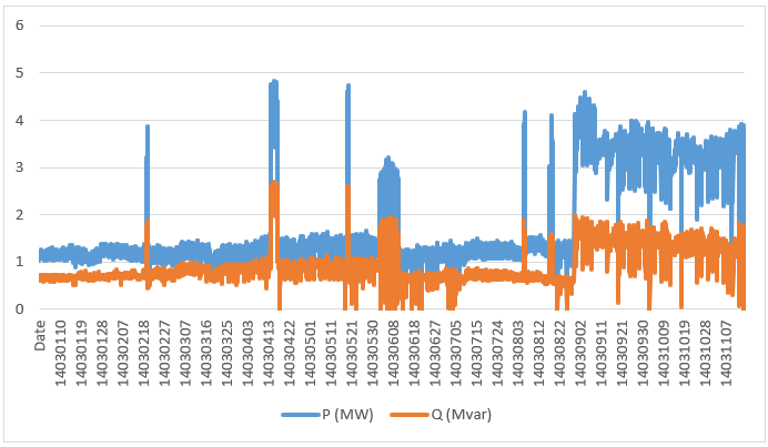 توان اکتیو و راکتیو ورودی یک مدل فیدر 1 فروردین ماه 1403 الی 29 دی ماه 1403